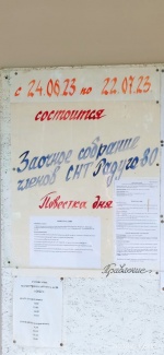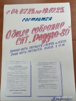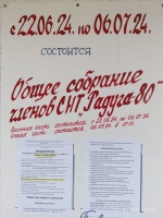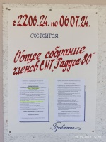 Уважаемые садоводы! Общее собрание СНТ "Радуга-80" состоится с 04.07.2025 по 19.07.2025    Уважаемые садоводы! Общее собрание СНТ "Радуга-80" состоится с 22.06.2024 по 06.07.2024