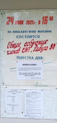 УВАЖАЕМЫЕ САДОВОДЫ! ОТМЕНЯЕТСЯ очное общее собрание членов СНТ, запланированное на 24.06.2023  Уважаемые садоводы! Отчет председателя Правления 2022-2023 Финансово-экономическое обоснование размера членских взносов 2023-2024 Акт ревизионной комиссии 2022-2023 Проект сметы 2023-2024 Повестка дня отчётного собрания 2023 Уведомление об отчётном собрании 2023 Бюллетень для голосования в отчётном собрании 2023 Собрание членов СНТ "Радуга-80" состоится 24 июня 2023 г. в 16 часов на площадке возле магазина